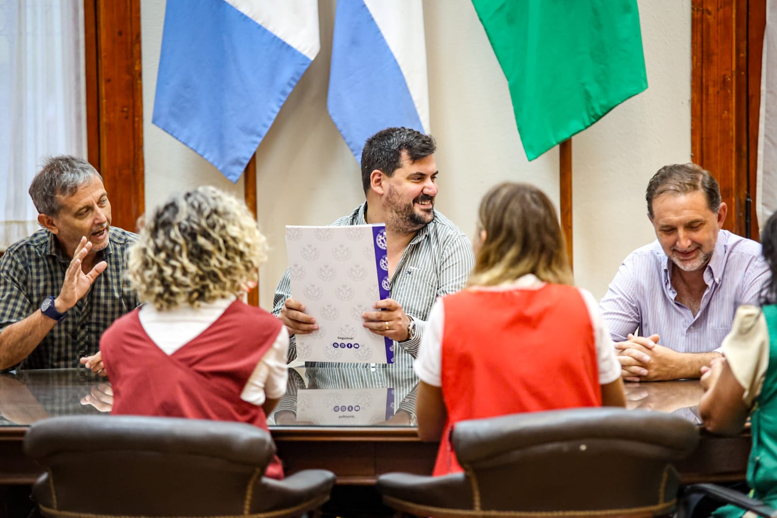 Tal como lo anunció en su discurso de inicio de sesiones ordinarias 2026 del Concejo Deliberante, el intendente Gino Chiapello, junto a sus secretarios, entregó a directoras de instituciones educativas el convenio mediante el cual el Municipio asume los costos del servicio de cobertura médica para establecimientos de Nivel Inicial.